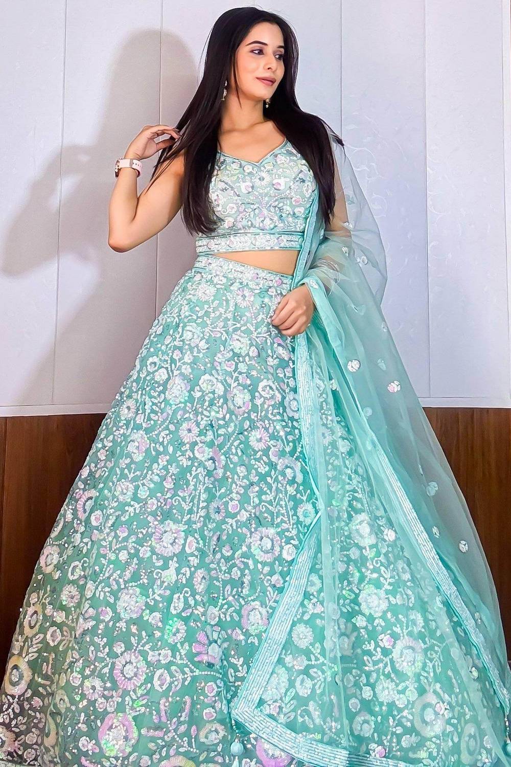Step into the spotlight with our Lehenga a dazzling creation designed to make your special moments unforgettable. Crafted from premium Net this lehenga offers a perfect combination of elegance and ease, keeping you graceful all day long. The exquisite Sequin makes this lehenga a masterpiece of traditional craftsmanship. Whether it’s Sangeet,Mehendi,Haldi or a grand celebration, this lehenga is the perfect choice to make a statement. Pair it with an ornate choker, a matching dupatta, and embellished stilettos to complete the regal look. Add a sleek bun or cascading curls for added glamour. Make every moment magical with the timeless allure of Lehenga
