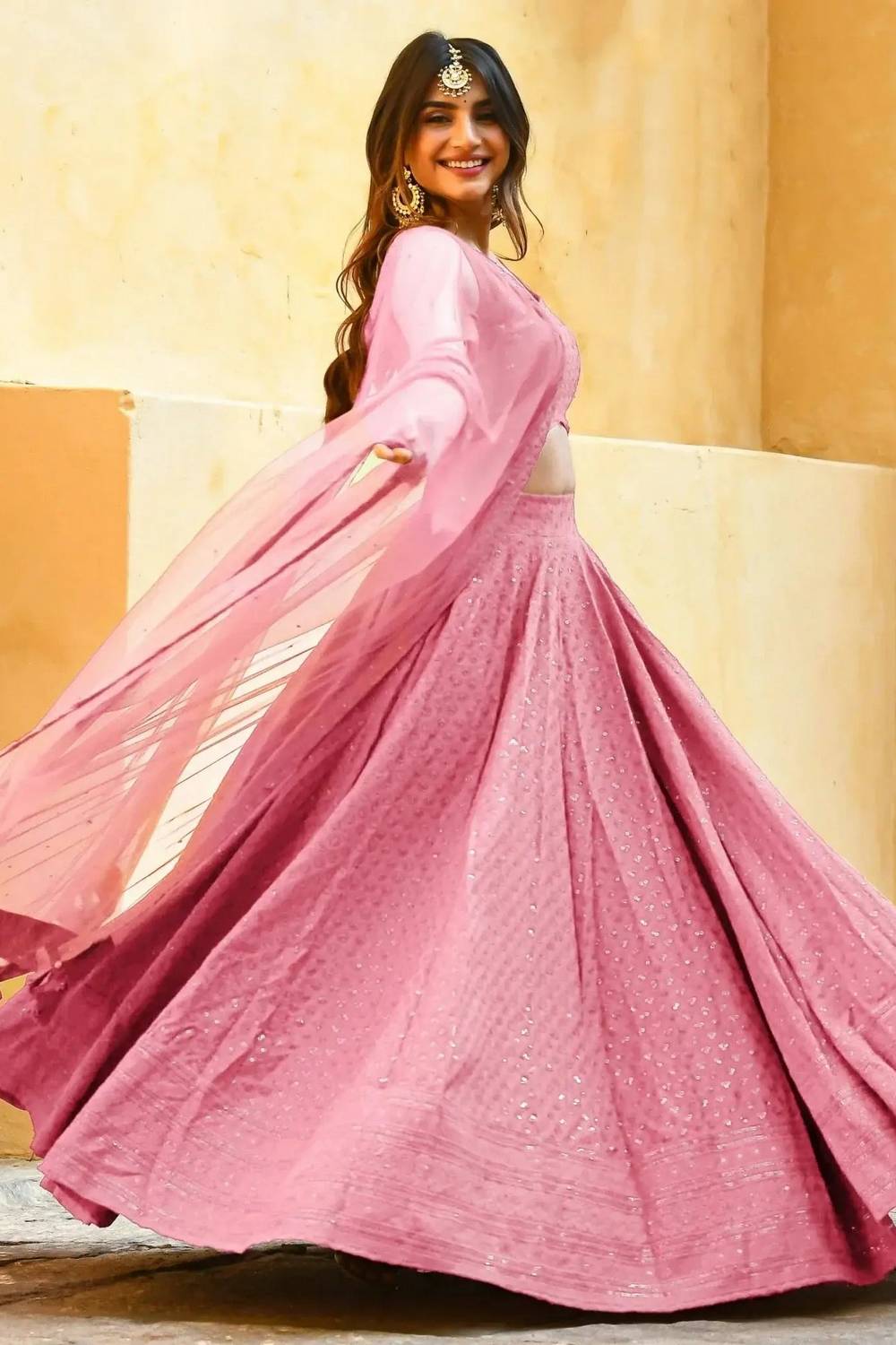 Pink Sequin With Embroidered Georgette Lehenga