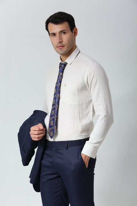 Navy Blue Ethnic Gold Motif Silk Navy Blue Tie