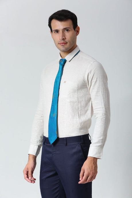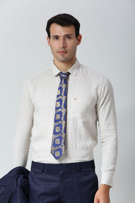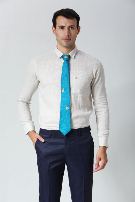 Blue Ethnic Gold Motif Silk Turquoise Tie