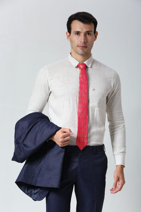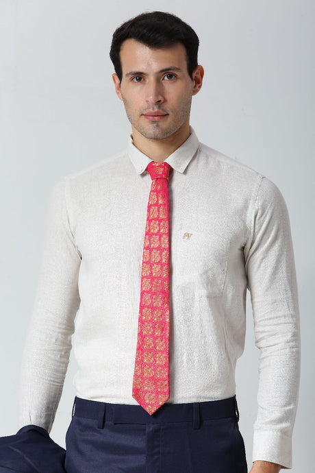Pink Ethnic Gold Motif Silk Pink Neck Tie