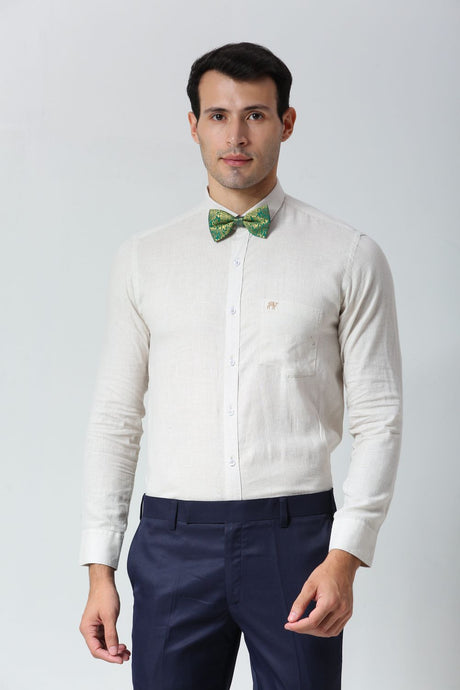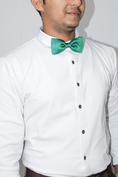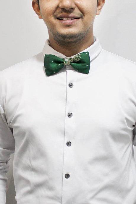 Green Silk Blend Floral Ethnic Motif Bow Tie
