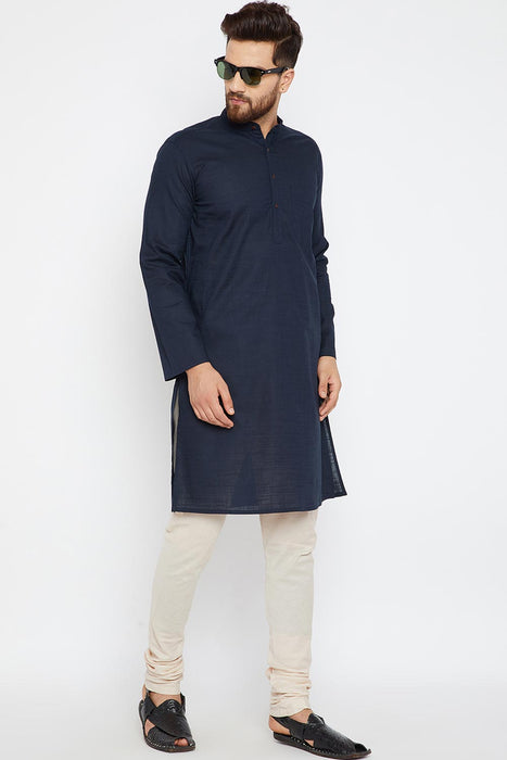 Men's Cotton Solid Kurta Top In Navy Blue - XS is backordered and will ship as soon as it is back in stock.