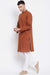 Men's Pure Cotton Solid Long Kurta Top In Light Brown