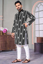 Black Embroidered Linen Men's Kurta Set