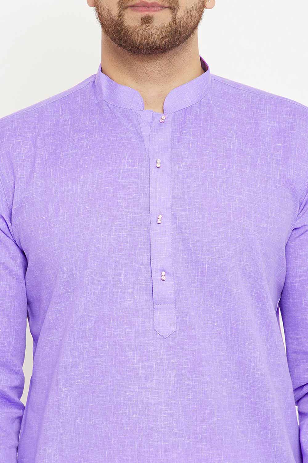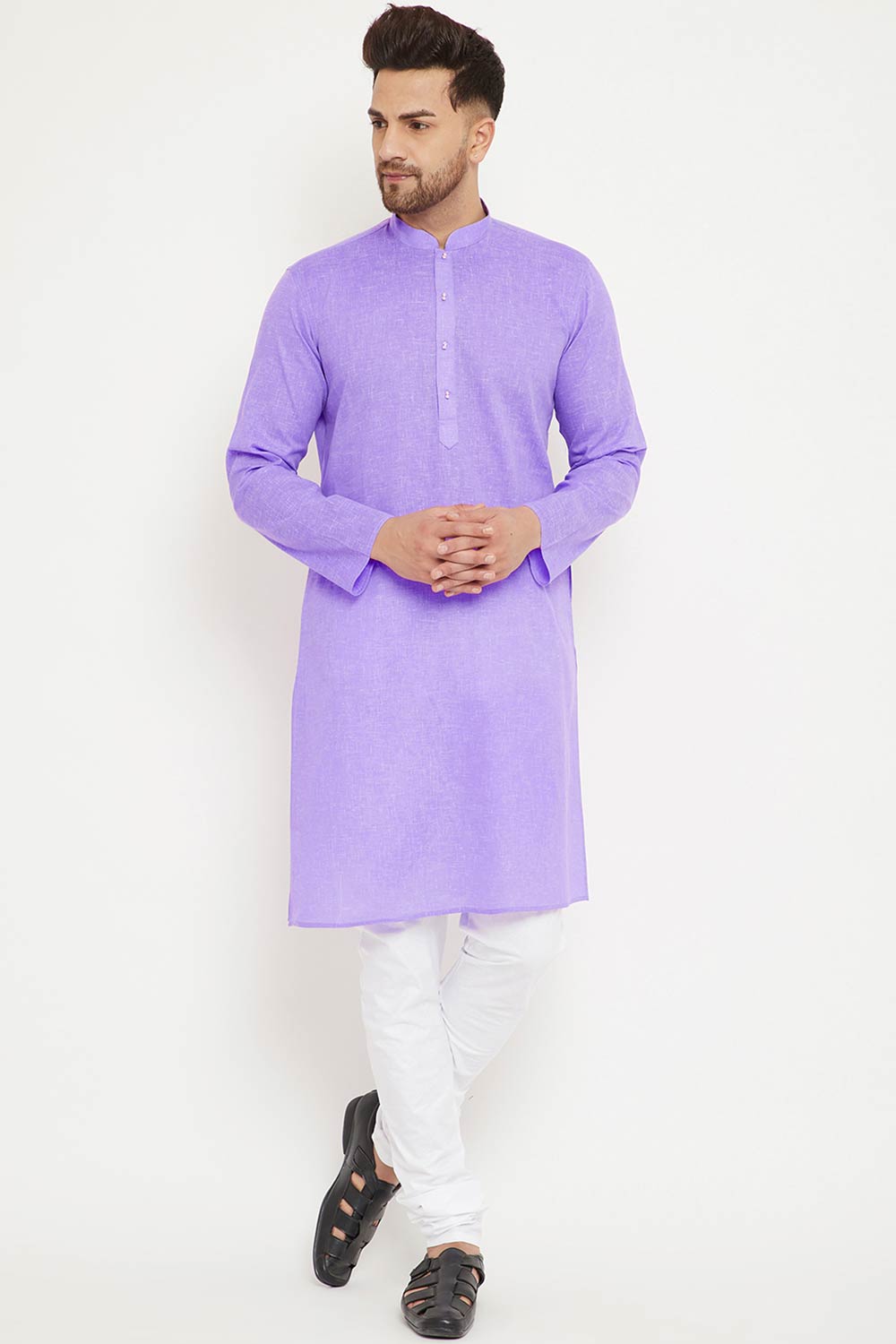 Men's blended Cotton Solid Kurta Set in Purple - 42
