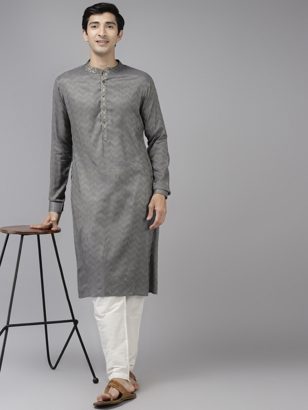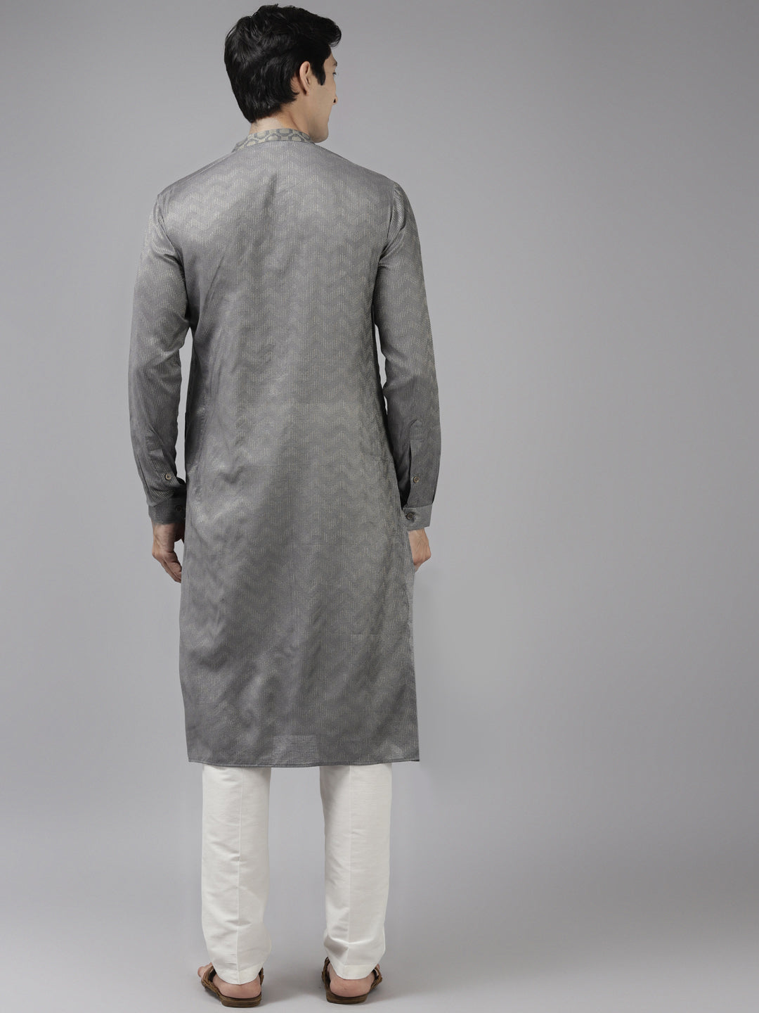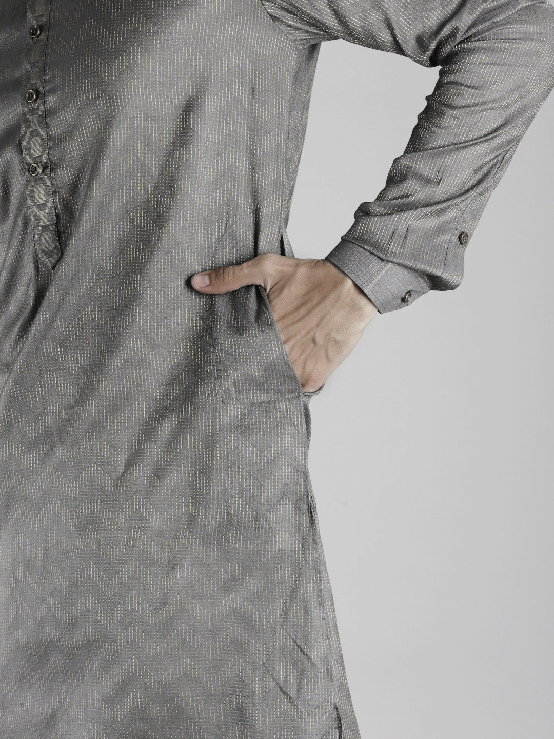 Men's Grey Art Silk Woven Thread Work Kurta Pajama Set