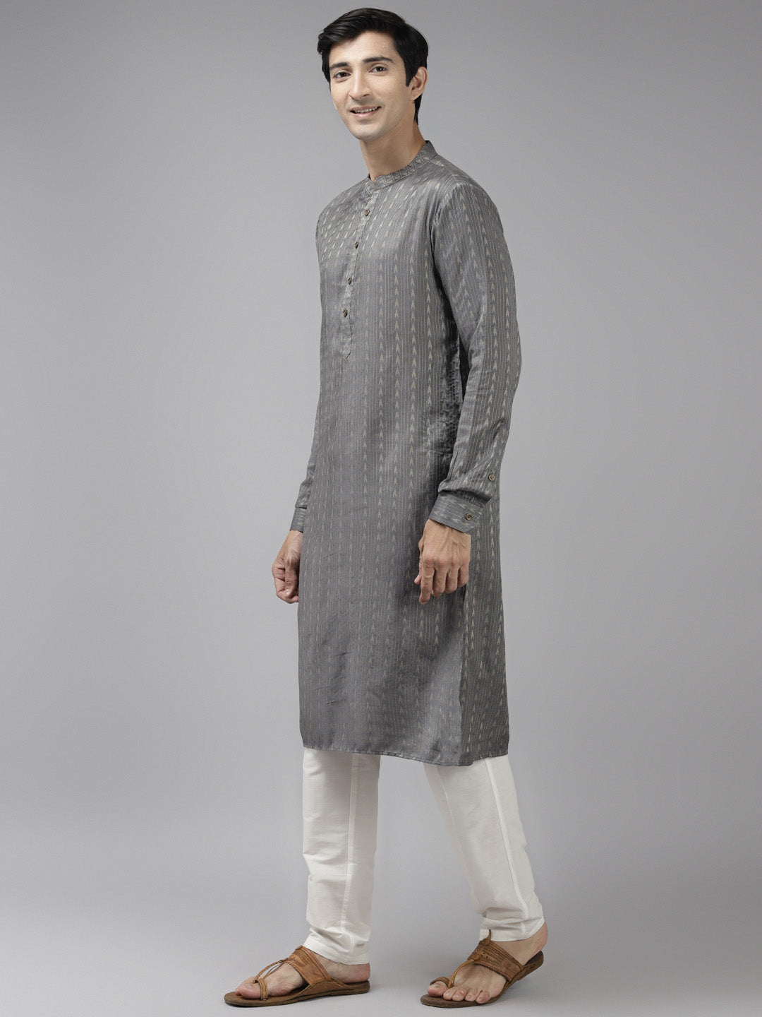 Men's Grey Art Silk Woven Thread Work Kurta Pajama Set