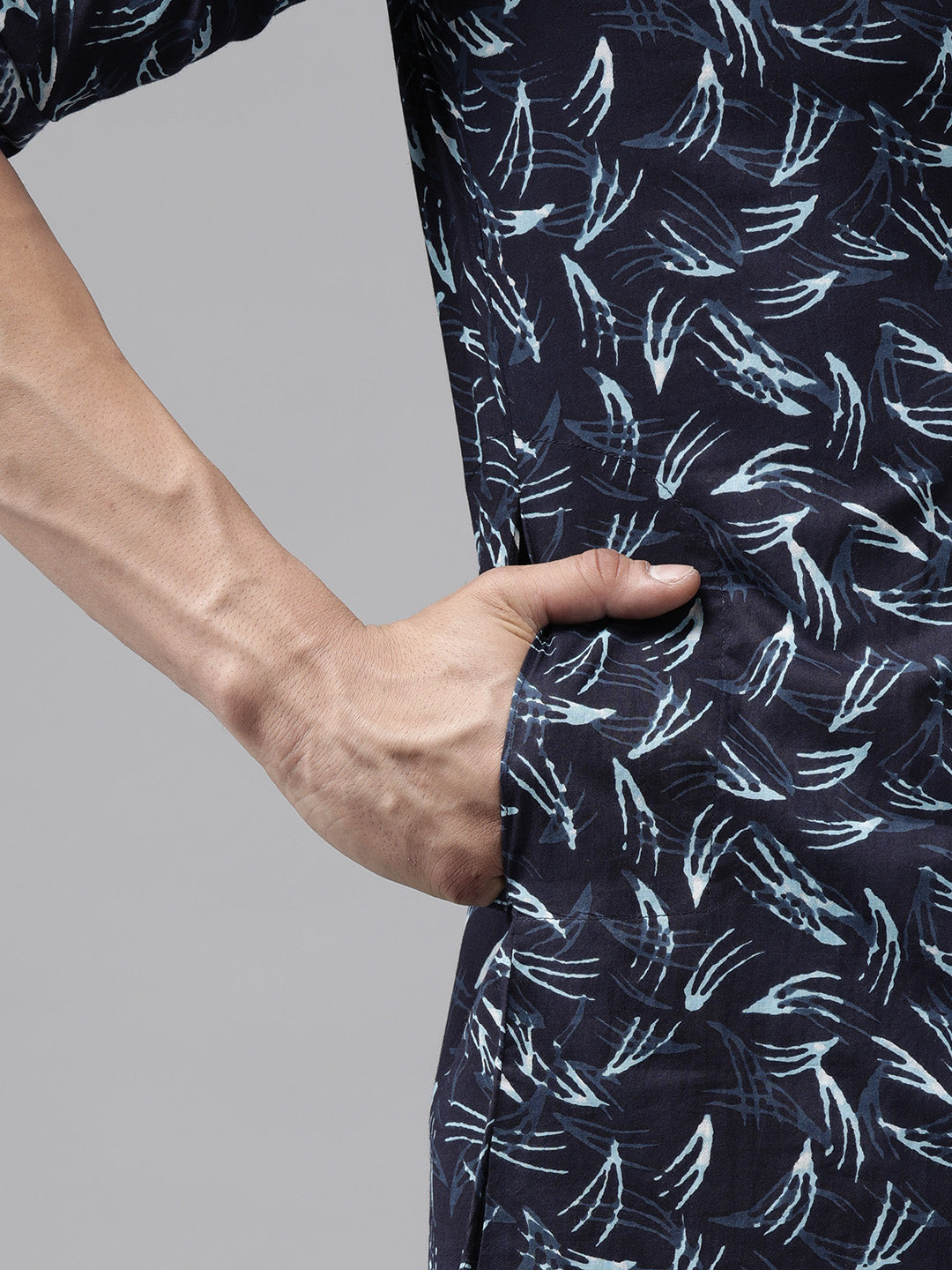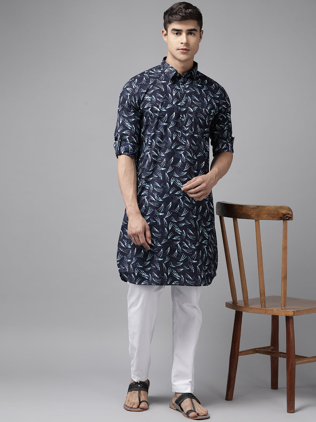 Men Indigo Regular Pure Cotton Pathani Kurta with white Salwar