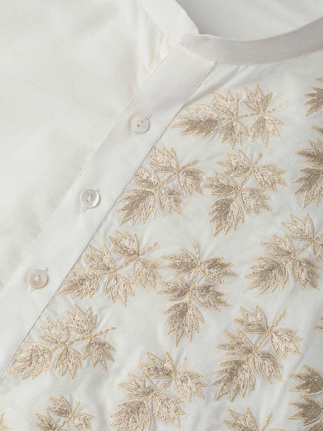 Men's Off White Cotton Thread Embroidered Kurta Pajama Set