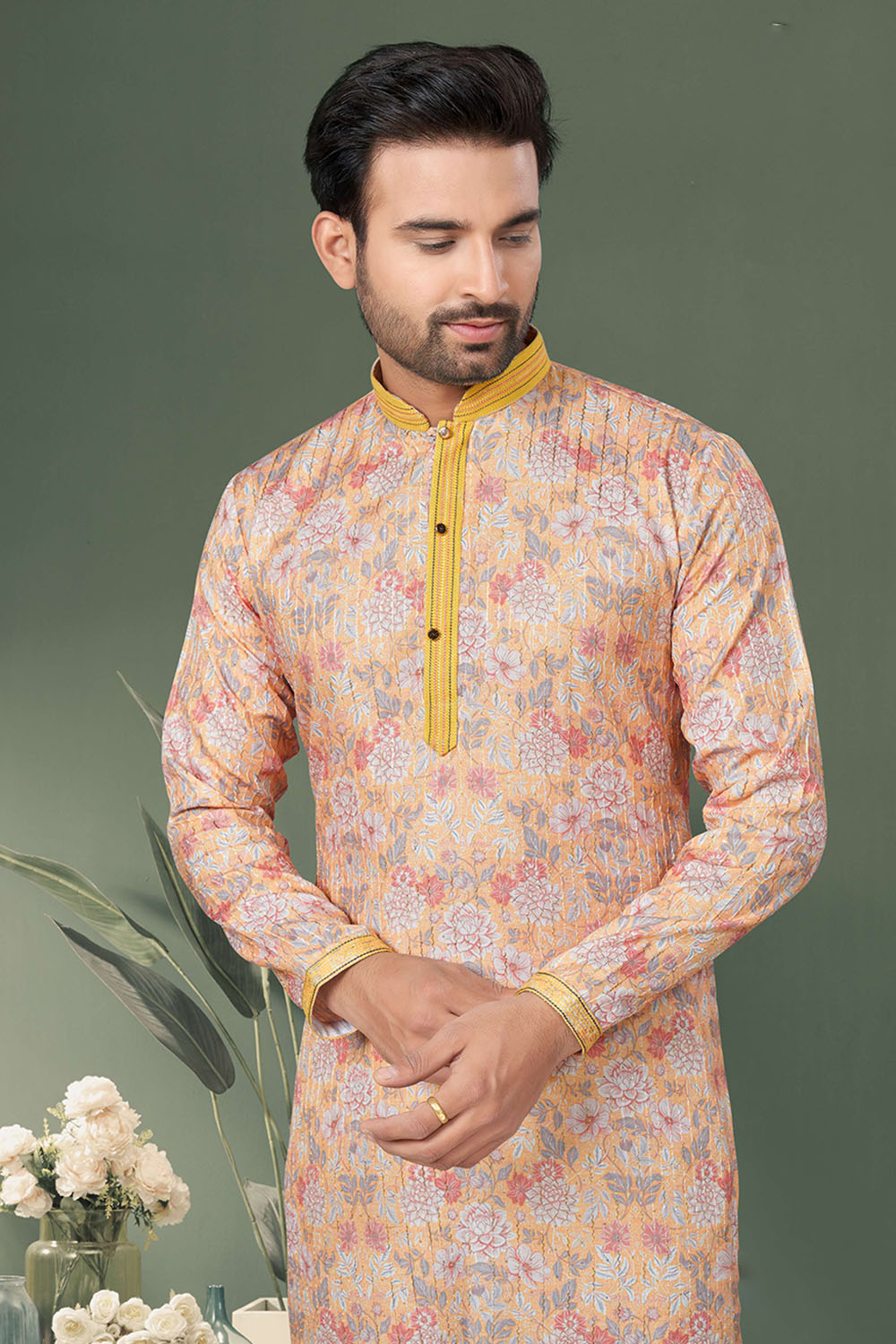 Experience timeless style with our Kurta Pyjama Set a perfect balance of tradition and modern sophistication. Made from Cotton this kurta set offers unmatched comfort and a refined look. Featuring Printed it reflects a rich heritage with a modern touch. Designed for Festive,Party this outfit is perfect for special occasion or your celebrations. Complete the look with mojari shoes and a classic watch for a dapper appearance. Make every occasion special with the elegance of Kurta Pyjama Set