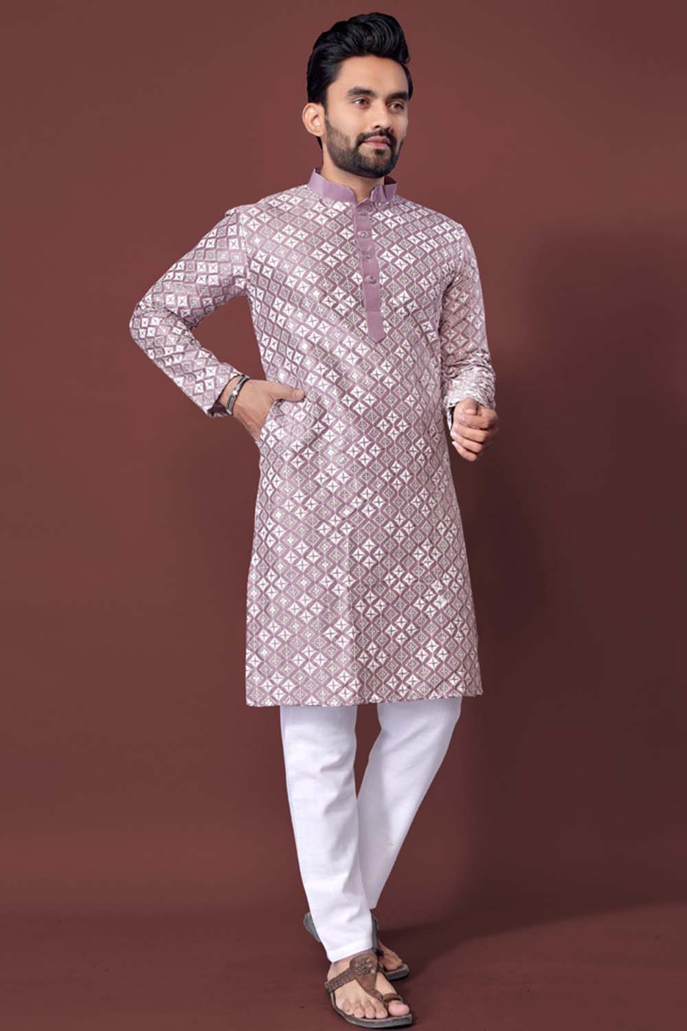 Experience timeless style with our Men's Kurta Set a perfect balance of tradition and modern sophistication. Made from Silk this Kurta set offers unmatched comfort and a refined look. Featuring embroidered and Geometric pattern it reflects a rich heritage with a modern touch. Designed for Festivewear this outfit is perfect for special occasion or your celebrations. Complete the look with mojari shoes and a classic watch for a dapper appearance. Make every occasion special with the elegance of Men's Kurta Set