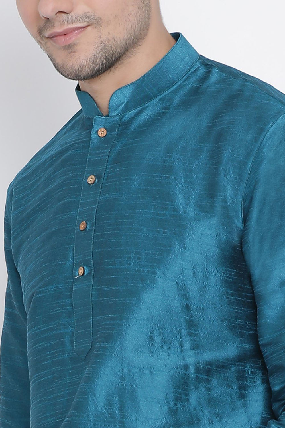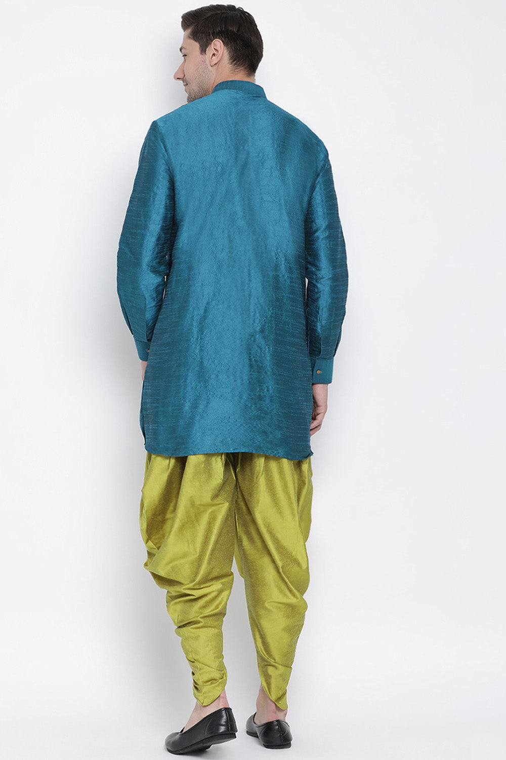 Men's Cotton Silk Dhoti Kurta Set In Turquoise