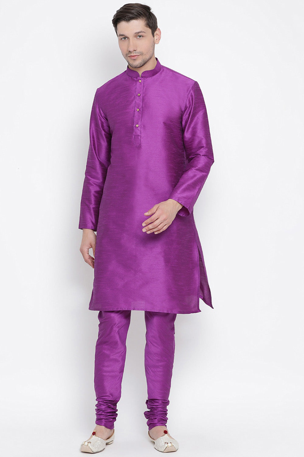 Men's Cotton Silk Kurta Pajama Set In Purple
