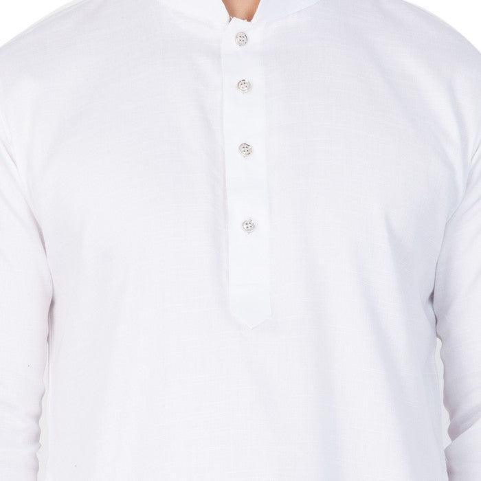 Vastramay brings to you this Stylish yet Comfortable Men White Men Soft Shiny Cotton Kurta with a Buttoned Cuff Styling paired with a Churidar Pyjama Set. Adorn it for a perfect Classy and Trendy look. Pair it with a juti or a mojari for the Royal look.