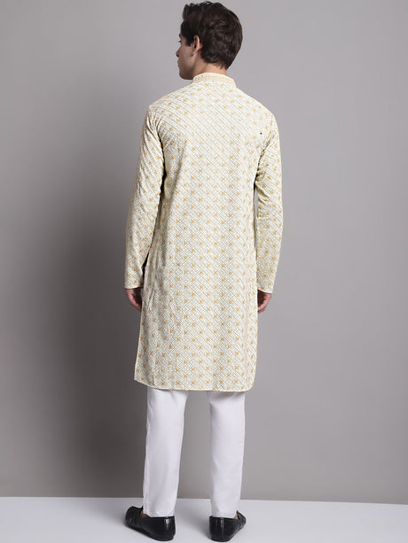 Men's Yellow Sequins Chikankari Embroidered Kurta