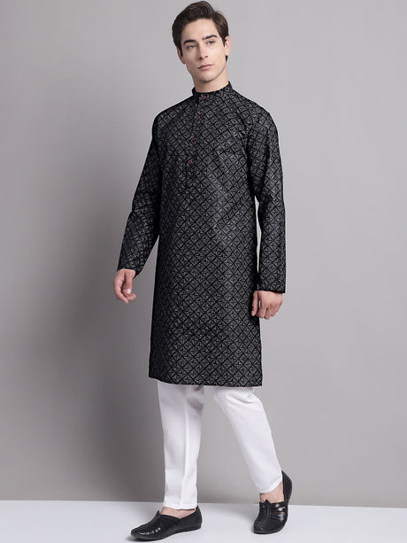 Men's Black Printed Pure Cotton Kurta Pajama Set