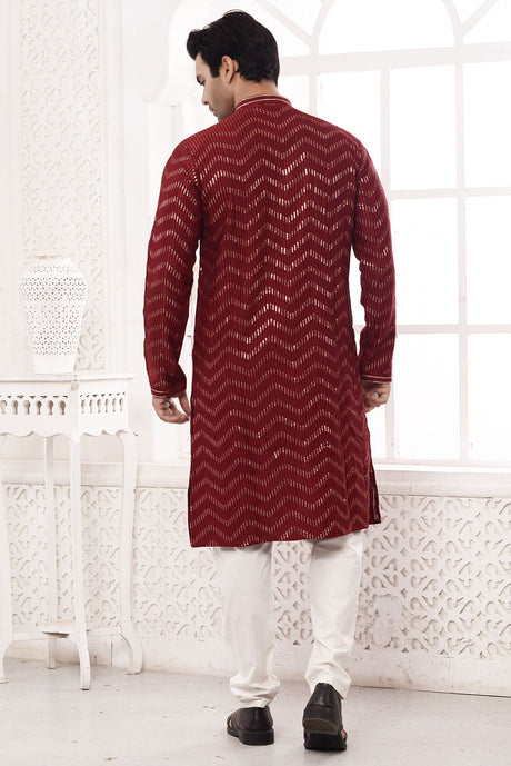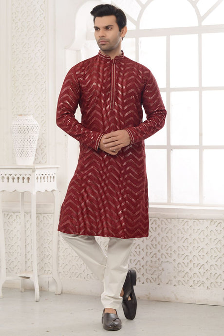 Men's Pure Cotton Solid Sherwani Top Kurta Top In Maroon