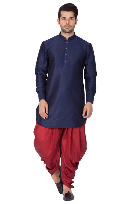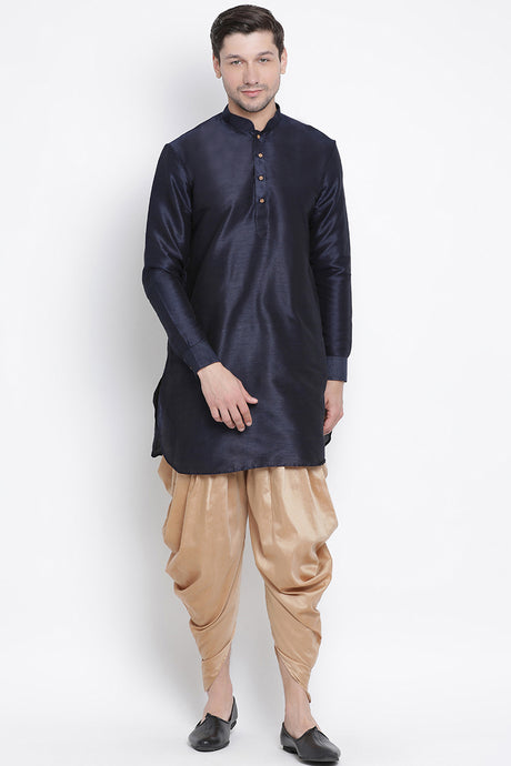 Men's Cotton Art Silk Kurta Set In Dark Blue