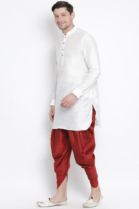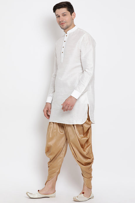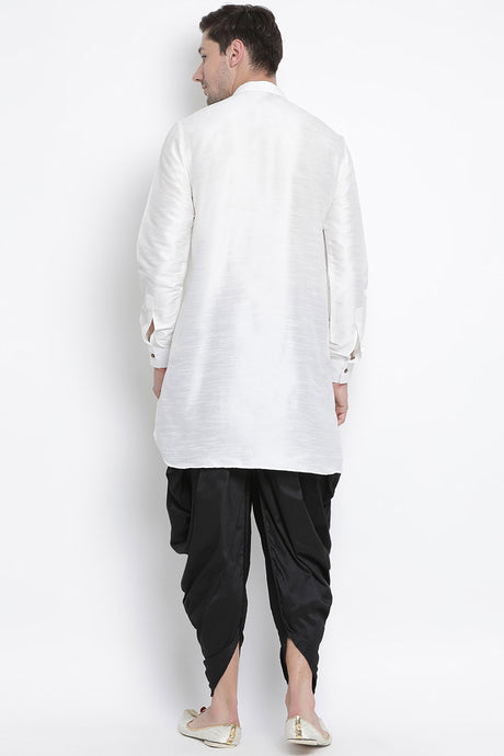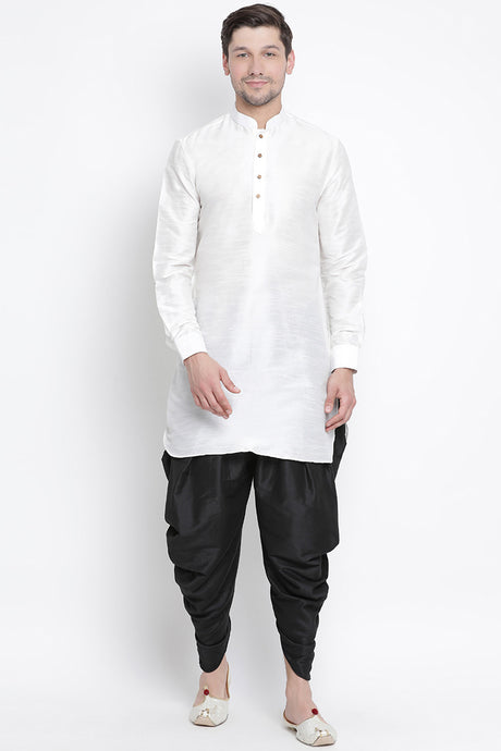 Men's Cotton Art Silk Kurta Set In White