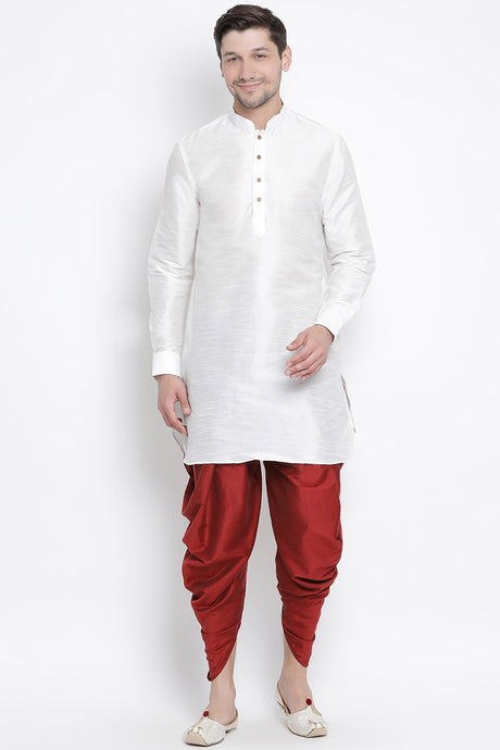Men's Cotton Art Silk Kurta Set In Maroon