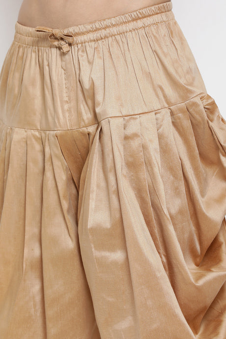 Men's Cotton Art Silk Kurta Set In Gold