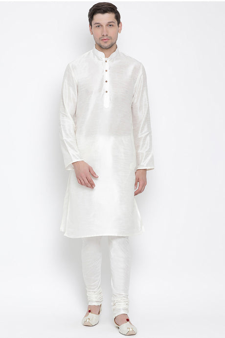 Men's Cotton Art Silk Solid Ethnic Shirt In White