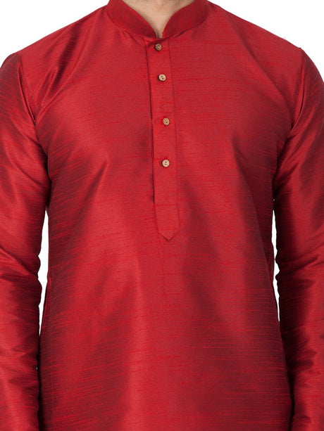 Men's Cotton Art Silk Solid Kurta And Pajama Set In Maroon