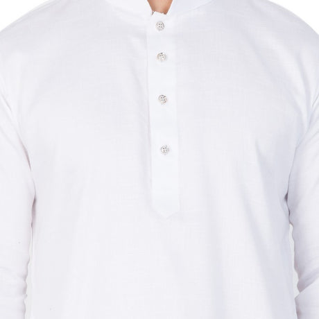 Men's Cotton Art Silk Solid Kurta And Pajama Set In White