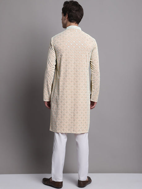 Men's Peach Chikankari Embroidered And Sequin Kurta With Pajama