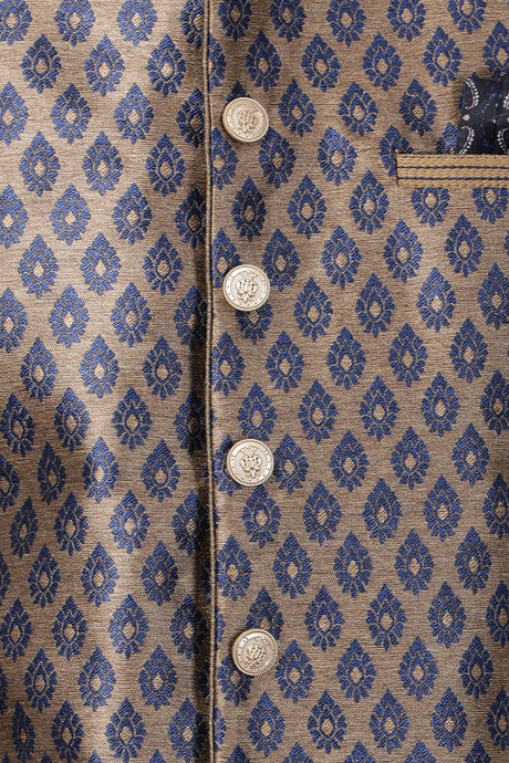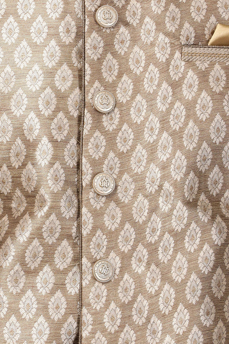 Men's Beige Banarasi Self-Design Nehru Jacket