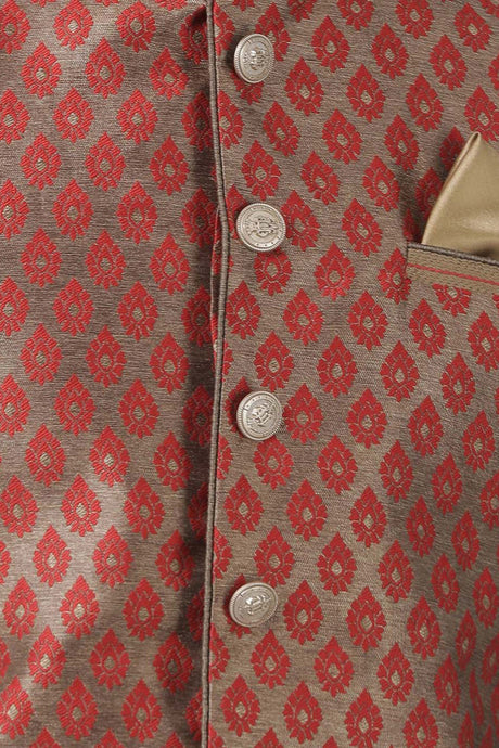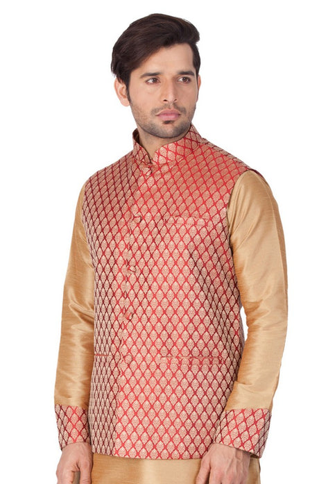 Men's Cotton Art Silk Ethnic Jacket In Maroon