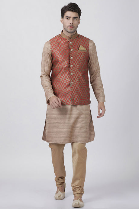 Men's Cotton Art Silk Ethnic Jacket In Gold