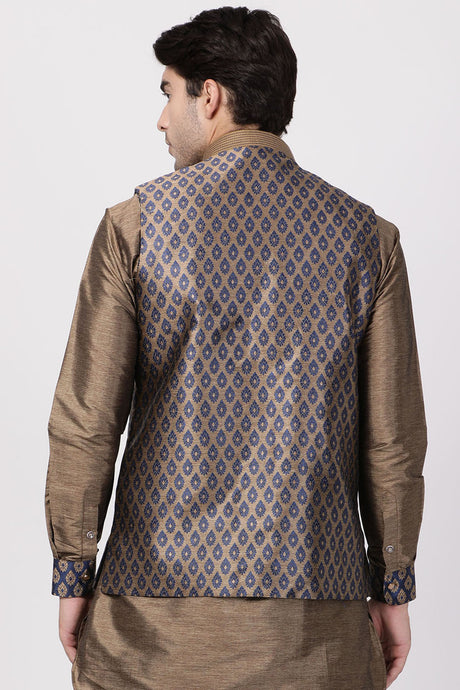 Men's Cotton Art Silk Ethnic Jacket In Beige