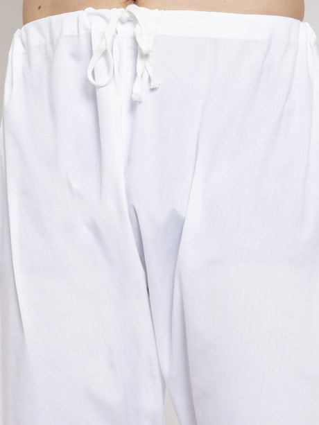 Men's White Cotton Chikankari Embroidered Kurta Pajama Set