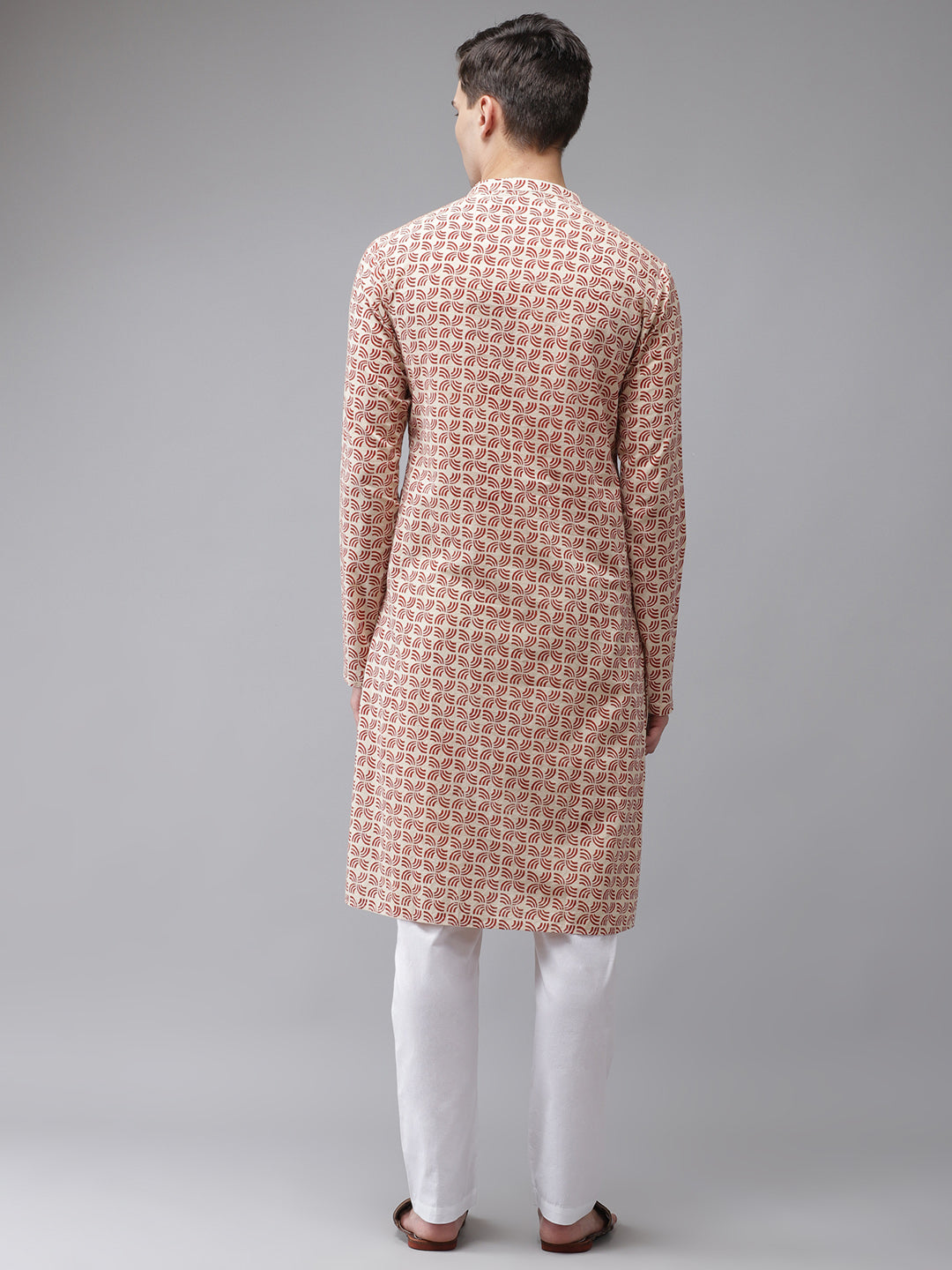 Men Beige And Maroon Hand Block Print Sustainable Straight With Kurta Pyjama