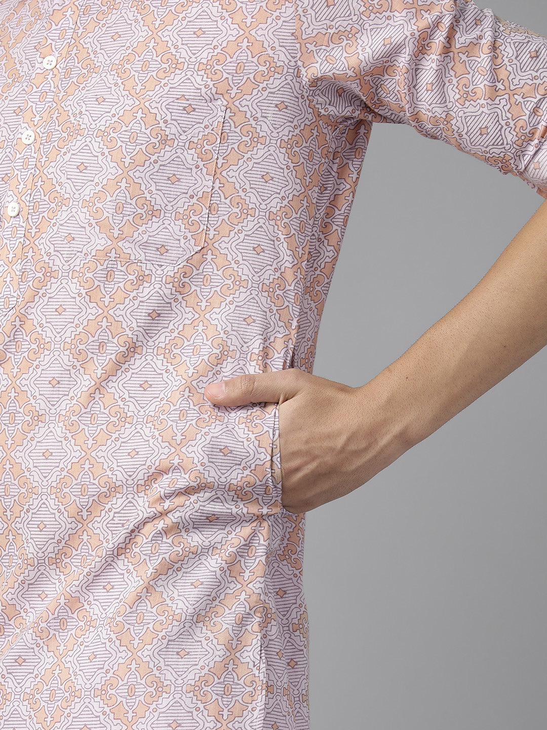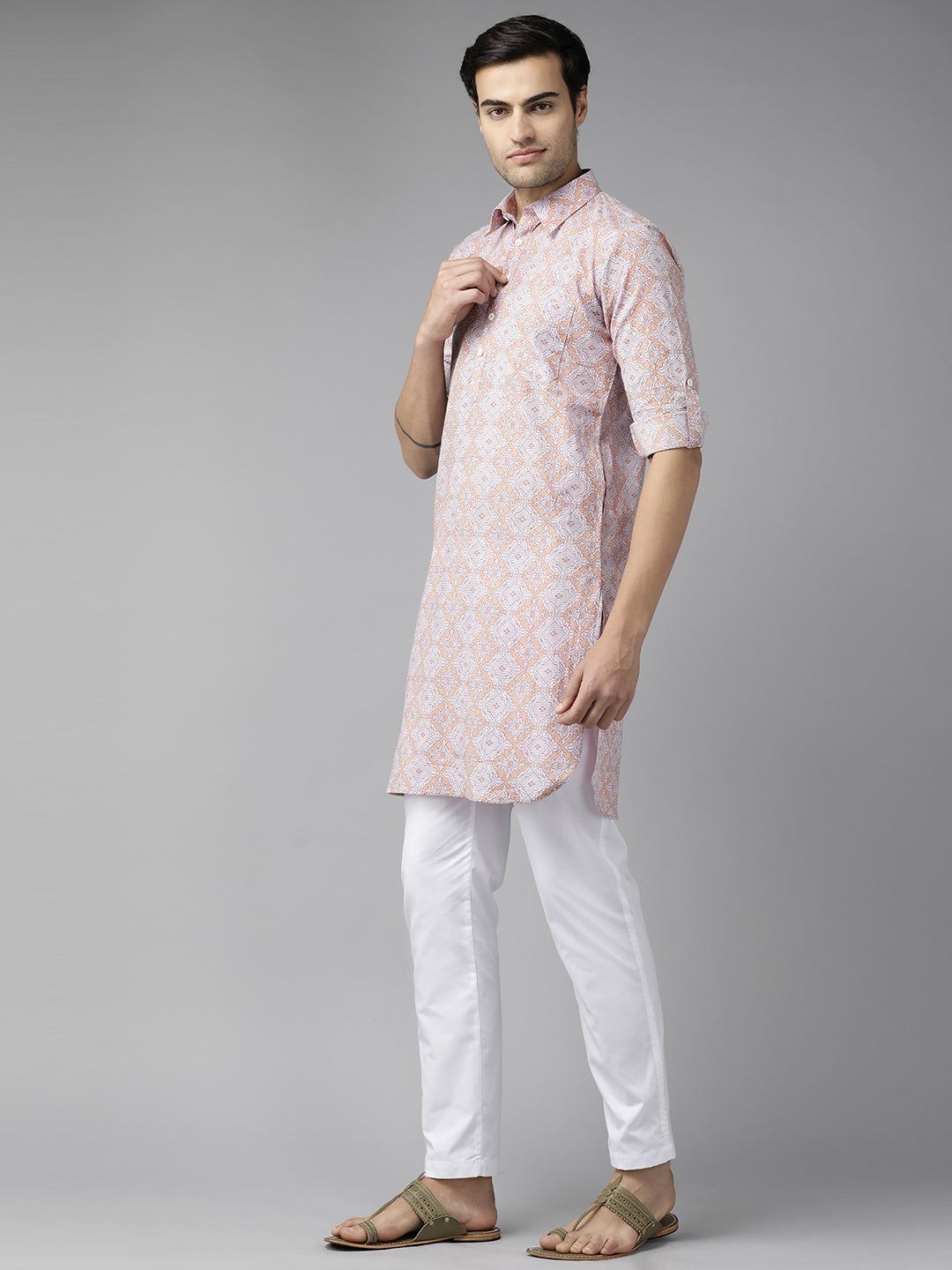 Men Beige Regular Pure Cotton Pathani Kurta with white Salwar