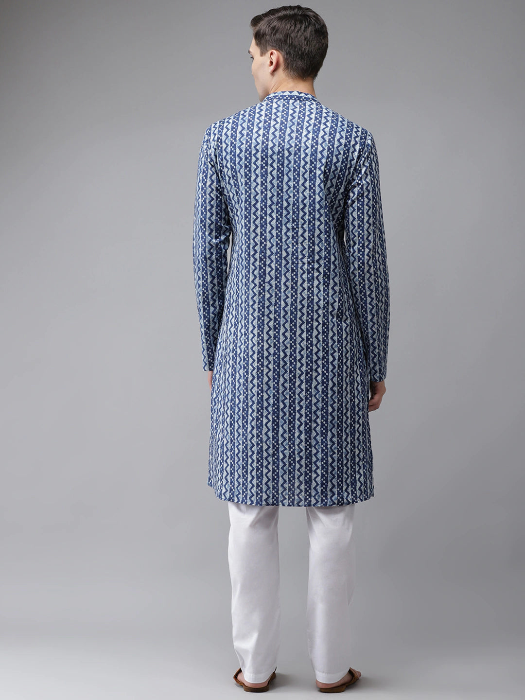 Men's Blue Cotton Printed Kurta Pajama Set