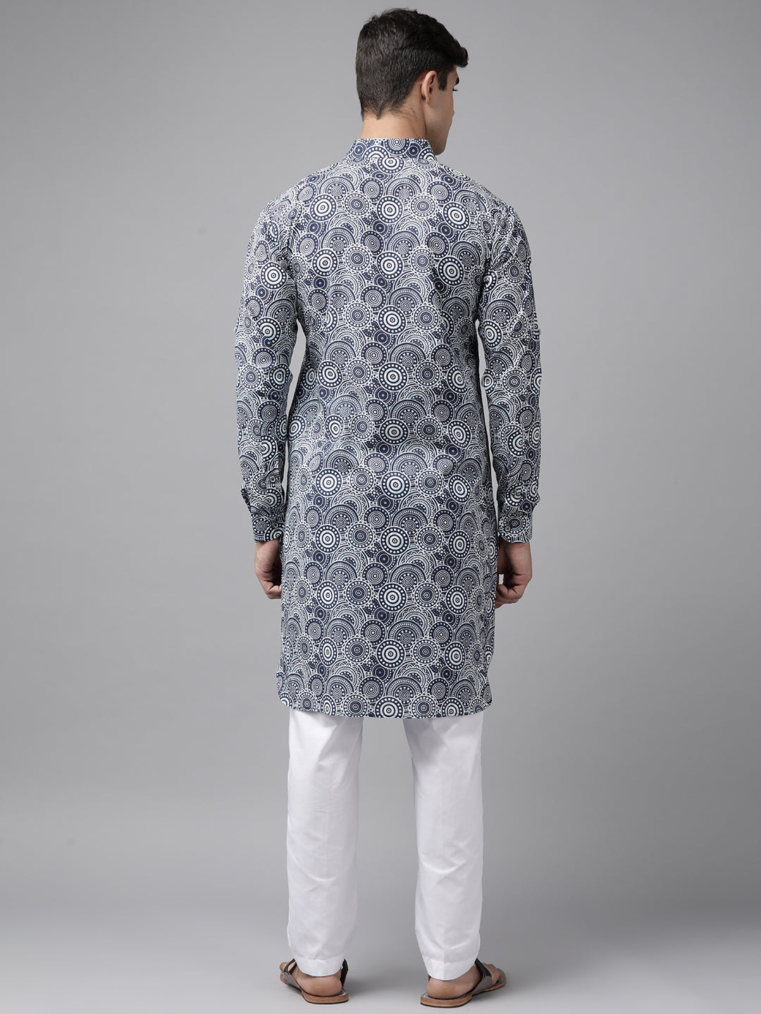 Men Blue Regular Pure Cotton Pathani Kurta with white Salwar