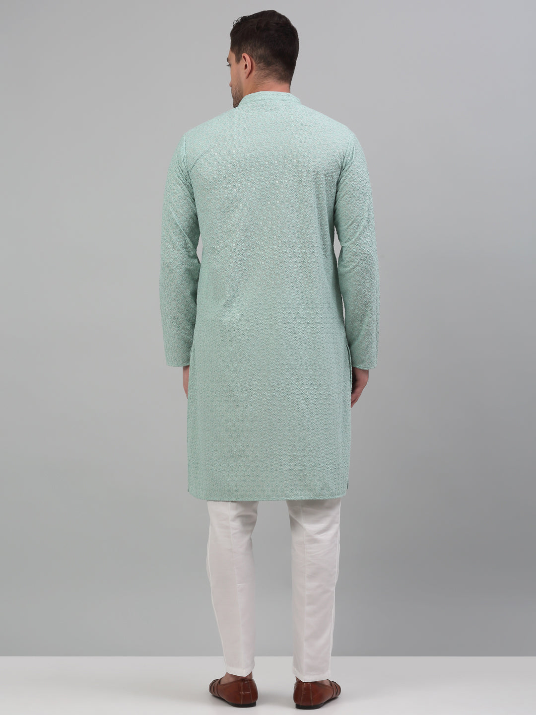 Men's Green Chikankari Embroidered And Sequin Kurta With Pajama