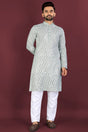 Mens Grey Embroidered Silk Kurta Pajama Set