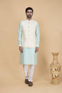 Men's Sea Green Embroidered Silk Kurta Set with Jacket