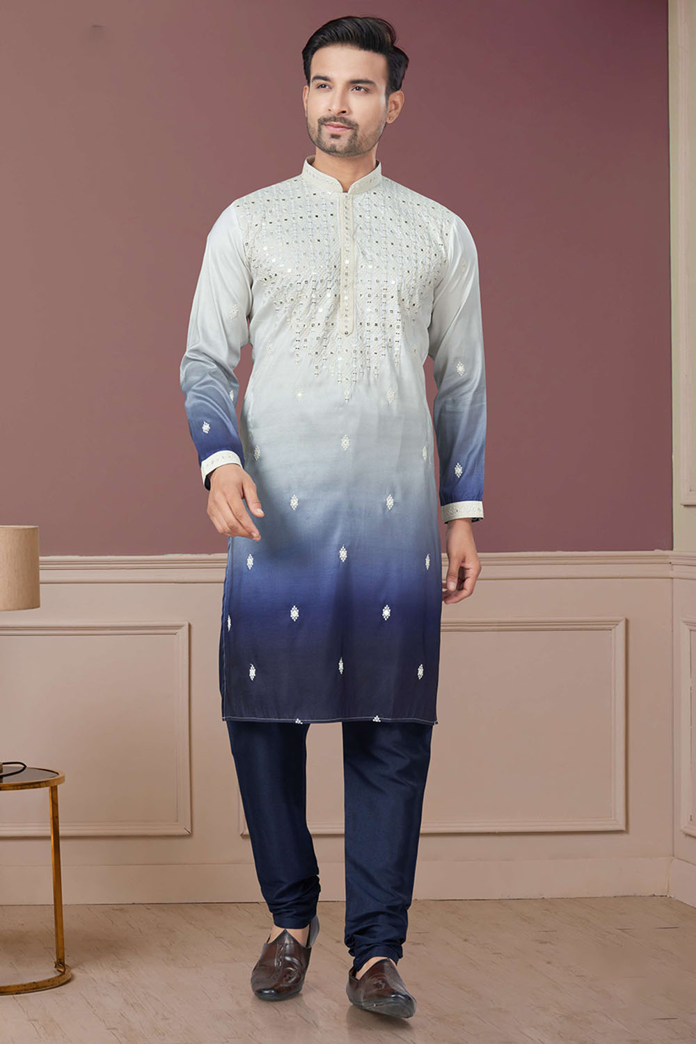 Experience timeless style with our Kurta Pyjama Set a perfect balance of tradition and modern sophistication. Made from Silk this kurta set offers unmatched comfort and a refined look. Featuring Sequin with Embroidered it reflects a rich heritage with a modern touch. Designed for Festive,Party this outfit is perfect for special occasion or your celebrations. Complete the look with mojari shoes and a classic watch for a dapper appearance. Make every occasion special with the elegance of Kurta Pyjama Set