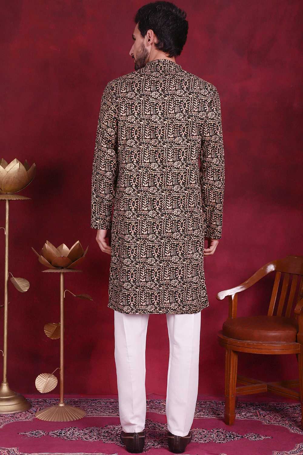 Experience timeless style with our Men's Kurta Sets a perfect balance of tradition and modern sophistication. Made from Viscose Rayon this kurta set offers unmatched comfort and a refined look. Featuring Printed it reflects a rich heritage with a modern touch. Designed for Festive this outfit is perfect for special occasion or your celebrations. Complete the look with mojari shoes and a classic watch for a dapper appearance. Make every occasion special with the elegance of Men's Kurta Sets