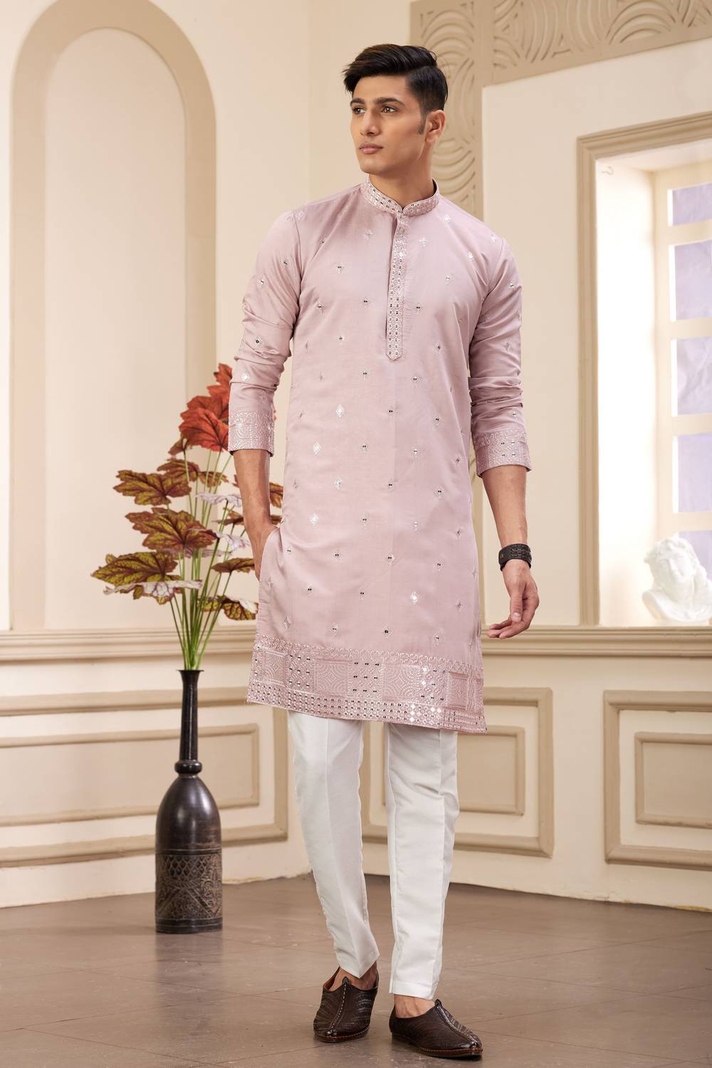 Experience timeless style with our Men's Kurta Sets a perfect balance of tradition and modern sophistication. Made from Art Silk this kurta set offers unmatched comfort and a refined look. Featuring Embroidered it reflects a rich heritage with a modern touch. Designed for Festive this outfit is perfect for special occasion or your celebrations. Complete the look with mojari shoes and a classic watch for a dapper appearance. Make every occasion special with the elegance of Men's Kurta Sets