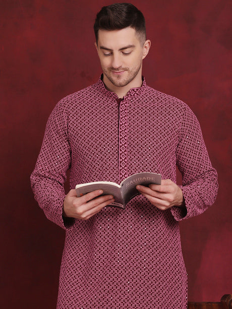 Men's Sequins Chikankari Embroidered Kurta With Pajama