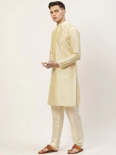 Men's Gold Dupion Solid Kurta Set