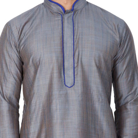 Men's Cotton Art Silk Solid Kurta And Pajama Set In Grey