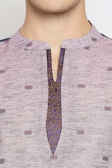 Men's Cotton Printed Short Kurta Top In Magenta