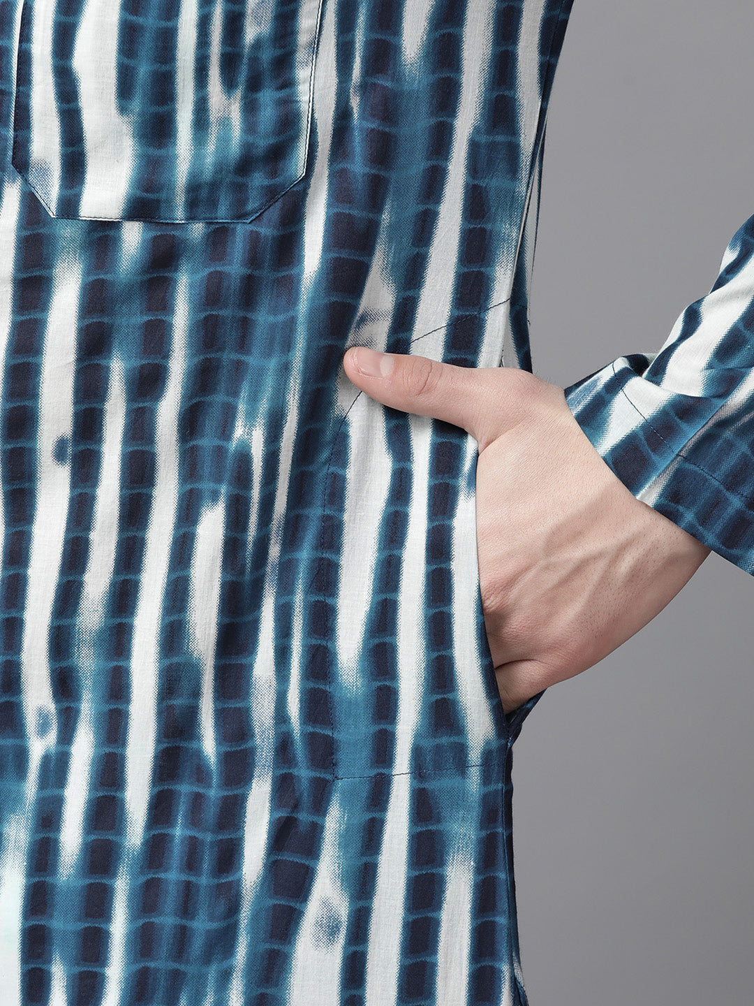 Men Blue Multi Tie and dye Print Design Straight Kurta